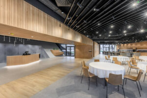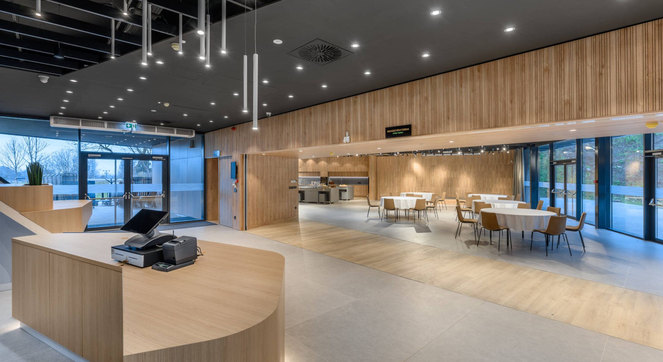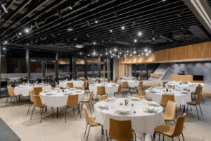 State-of-the-art technology — including integrated projection surfaces, sound systems, and high-speed internet — combined with fully adjustable lighting, temperature, and shading systems, allows the space to adapt effortlessly to any event format.